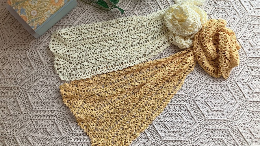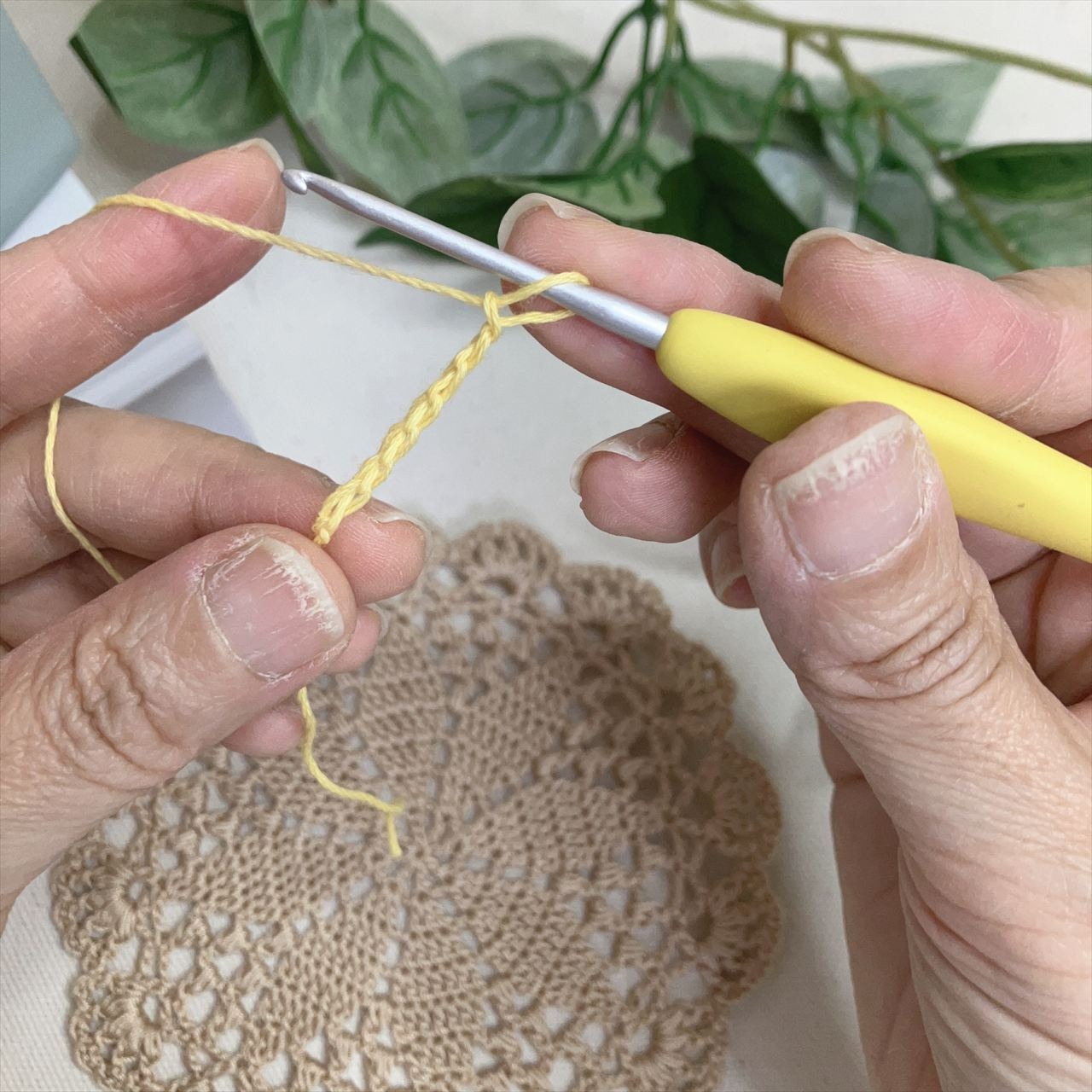 かぎ針2号で編むとかっちりとした雰囲気に、かぎ針4号で編むと柔らかくふんわりと仕上がります。