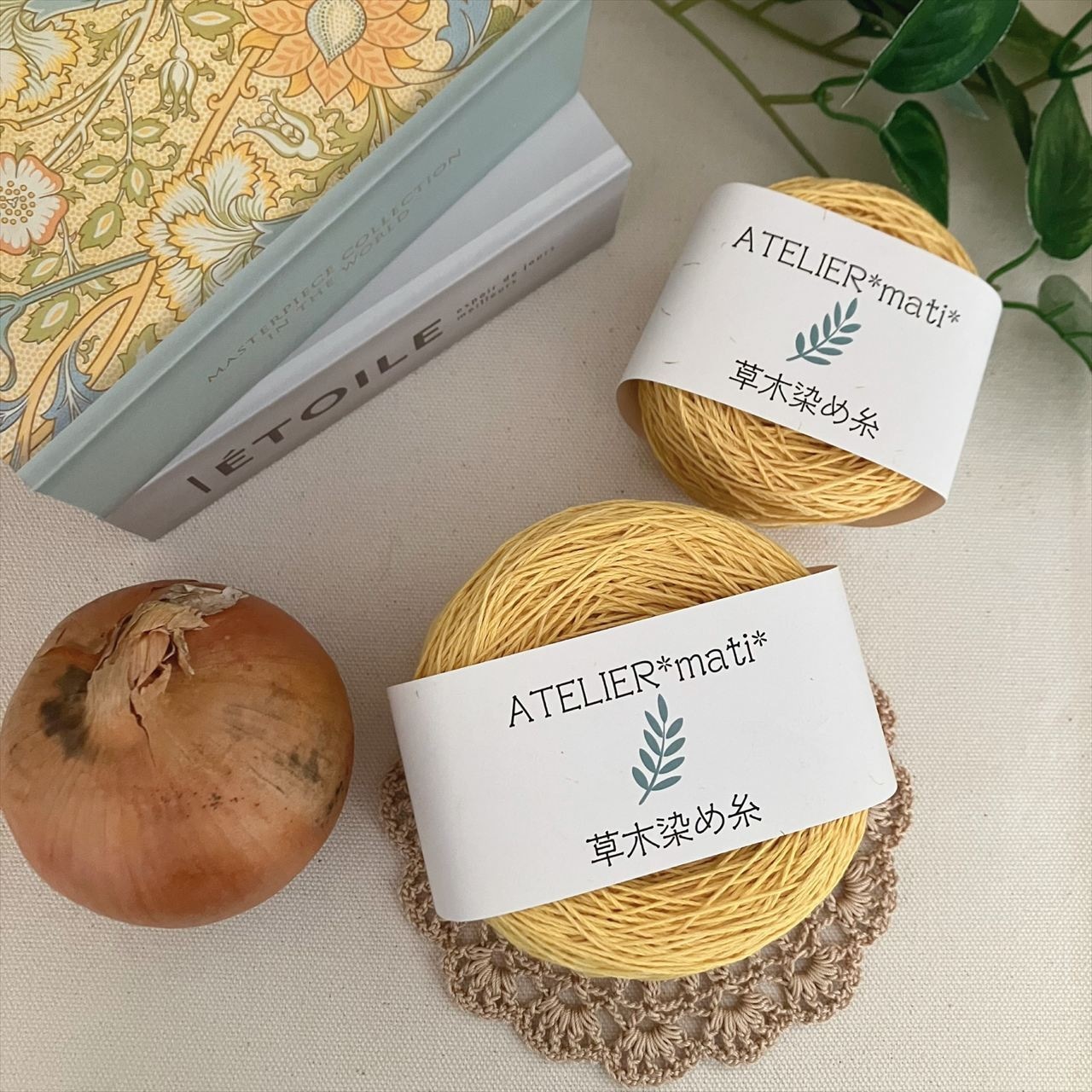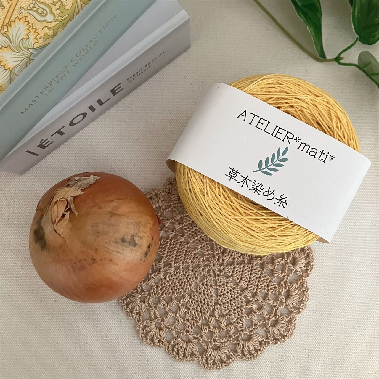 玉ねぎの皮を使って染めたスーピマ綿100%の手編み用糸です。