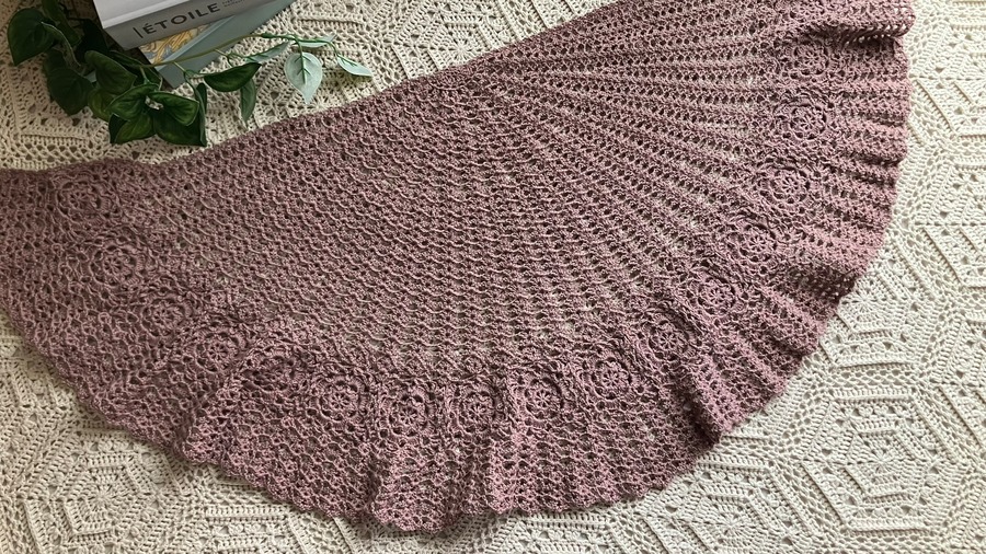 お花のモチーフ繋ぎと放射上に広がる模様が繊細なストールです。