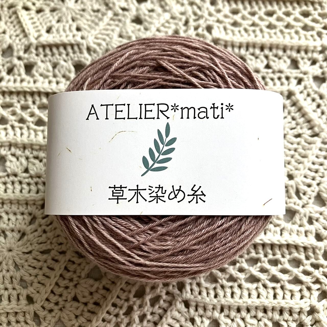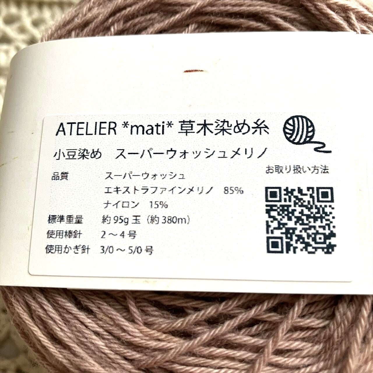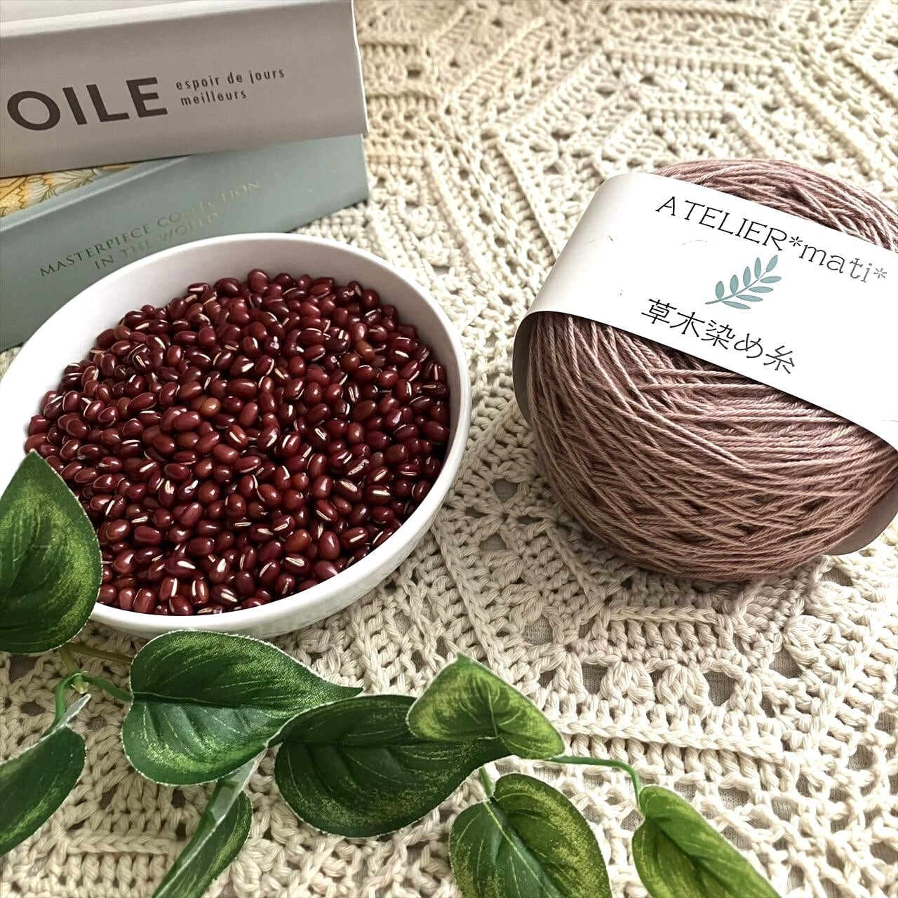 防縮加工を施したエキストラインメリノを、北海道産の小豆で染めました。