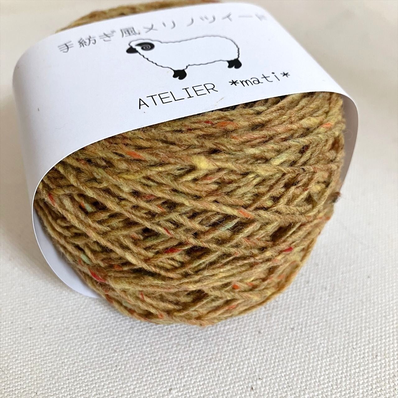 ふんわりとした風合いと単糸の柔らかさが特徴の手紡ぎ風のツイード糸です。