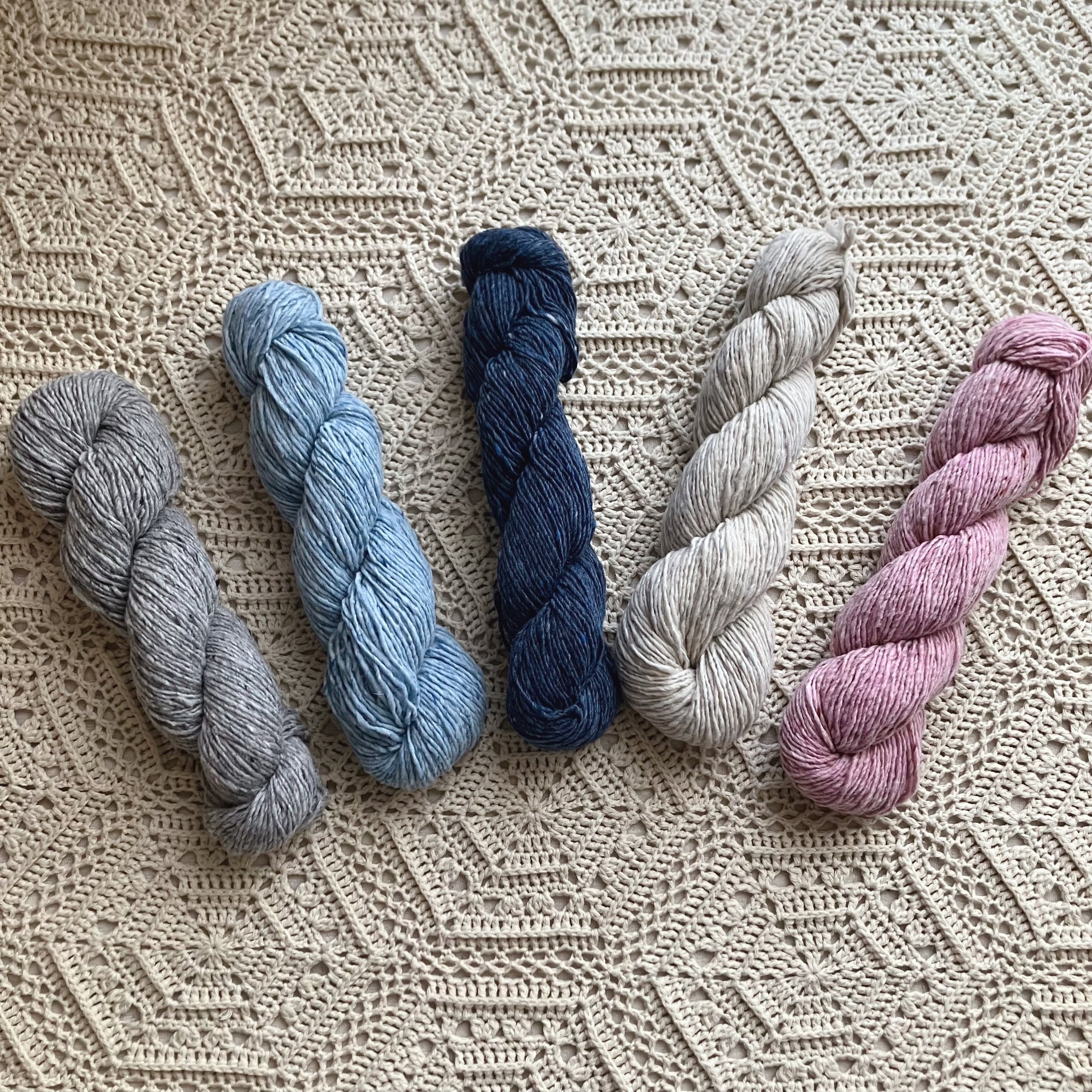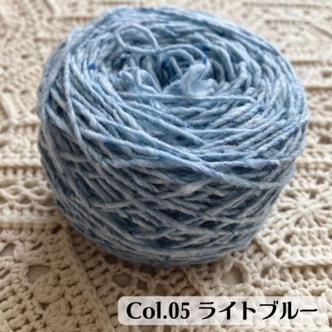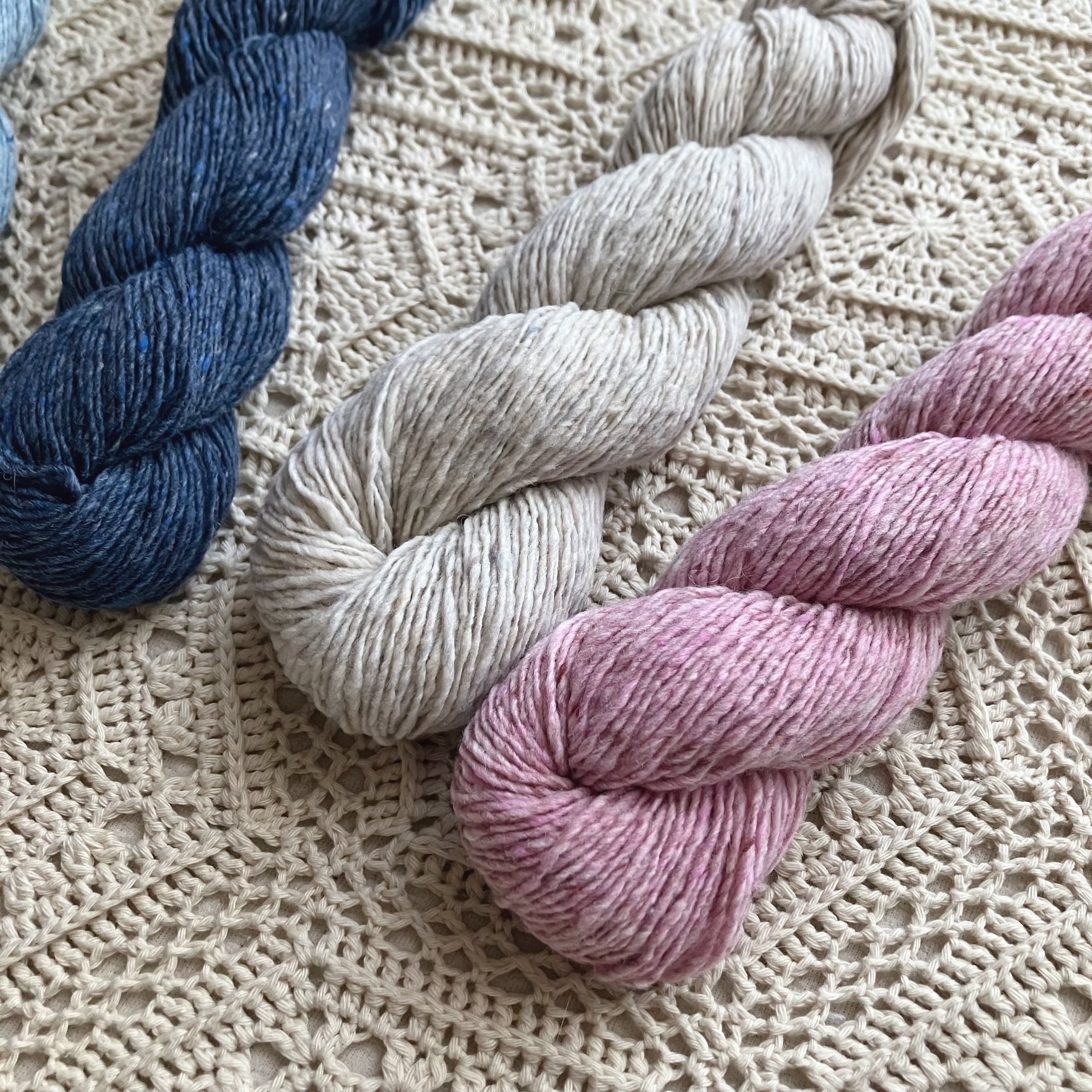 控えめに入ったネップが可愛く、棒針でシンプルにメリヤス編みを編んでも、かぎ針で細編みを編んでも、表情豊かな編地に仕上がります。
