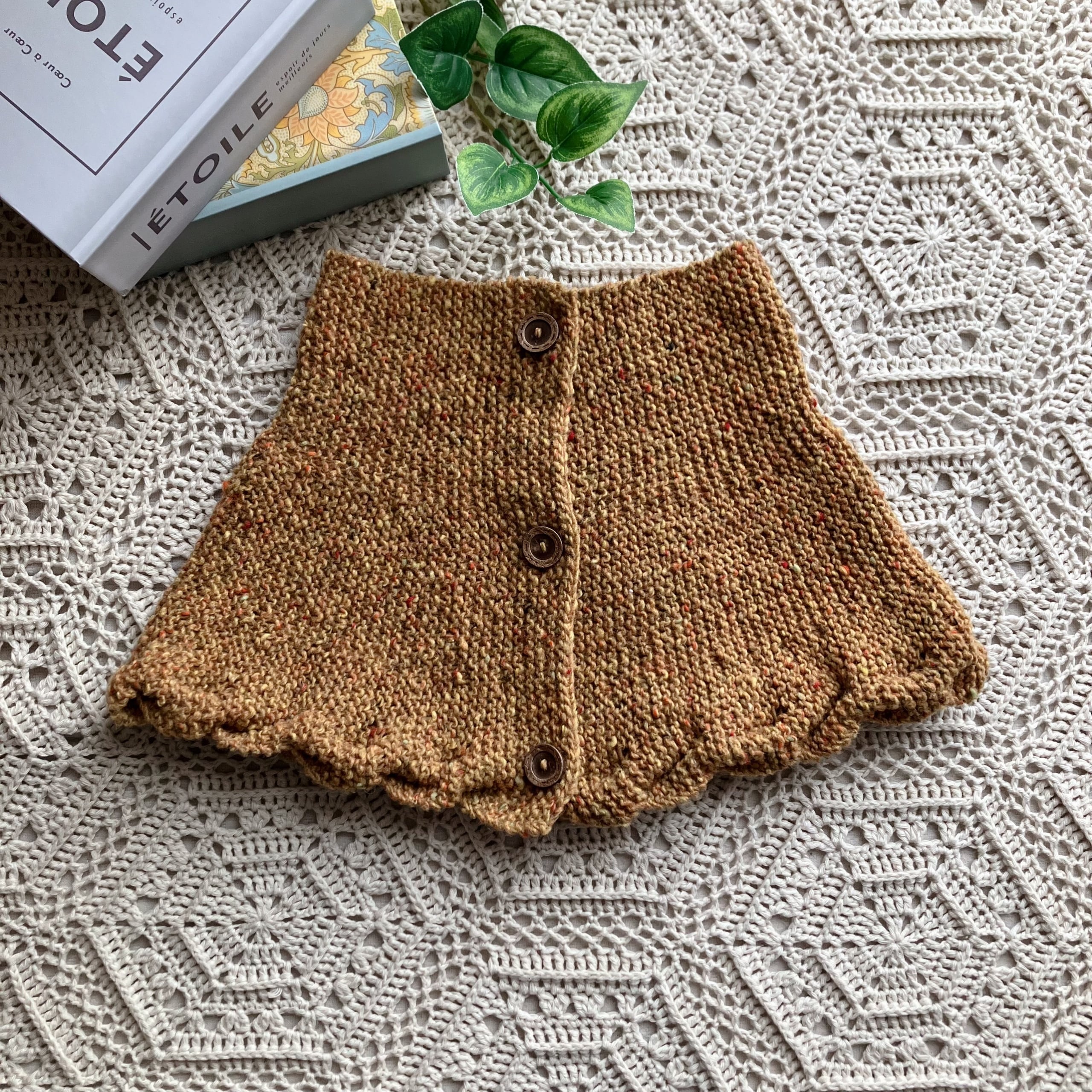 表目だけで編めるガーター編みのネックウォーマーは、裾に向かって広がるシルエットと、裾のウネウネがポイント。