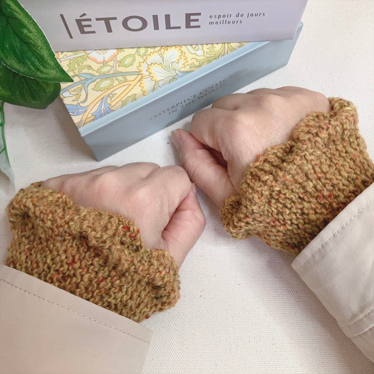フリルのように見えるウネウネ模様が、コートやジャケットの袖口からちょこっとだけ見えて、とても可愛いリストウォーマ―になりました。