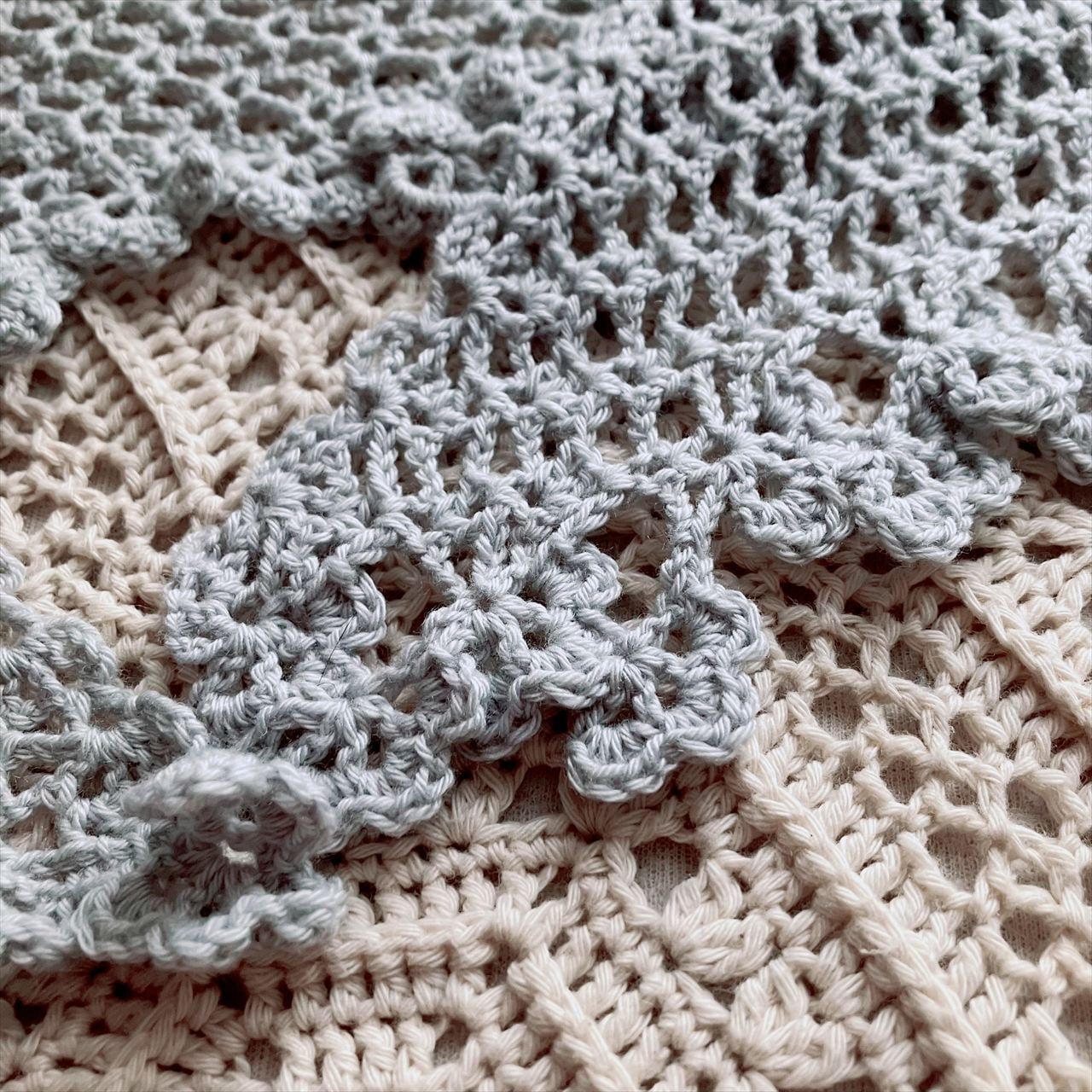 一見、フリルの部分がとても難しそうに見えるかもしれませんが、基本の編み方のみで編んでいただけます。