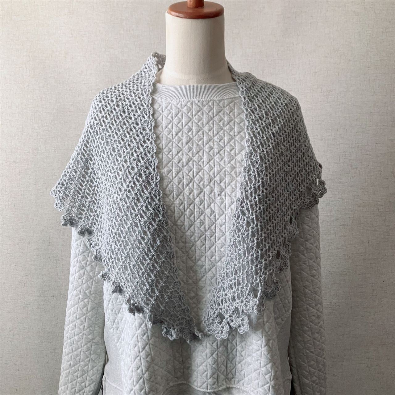 サイズは、長辺で123cmほどの細長い形のストールです。