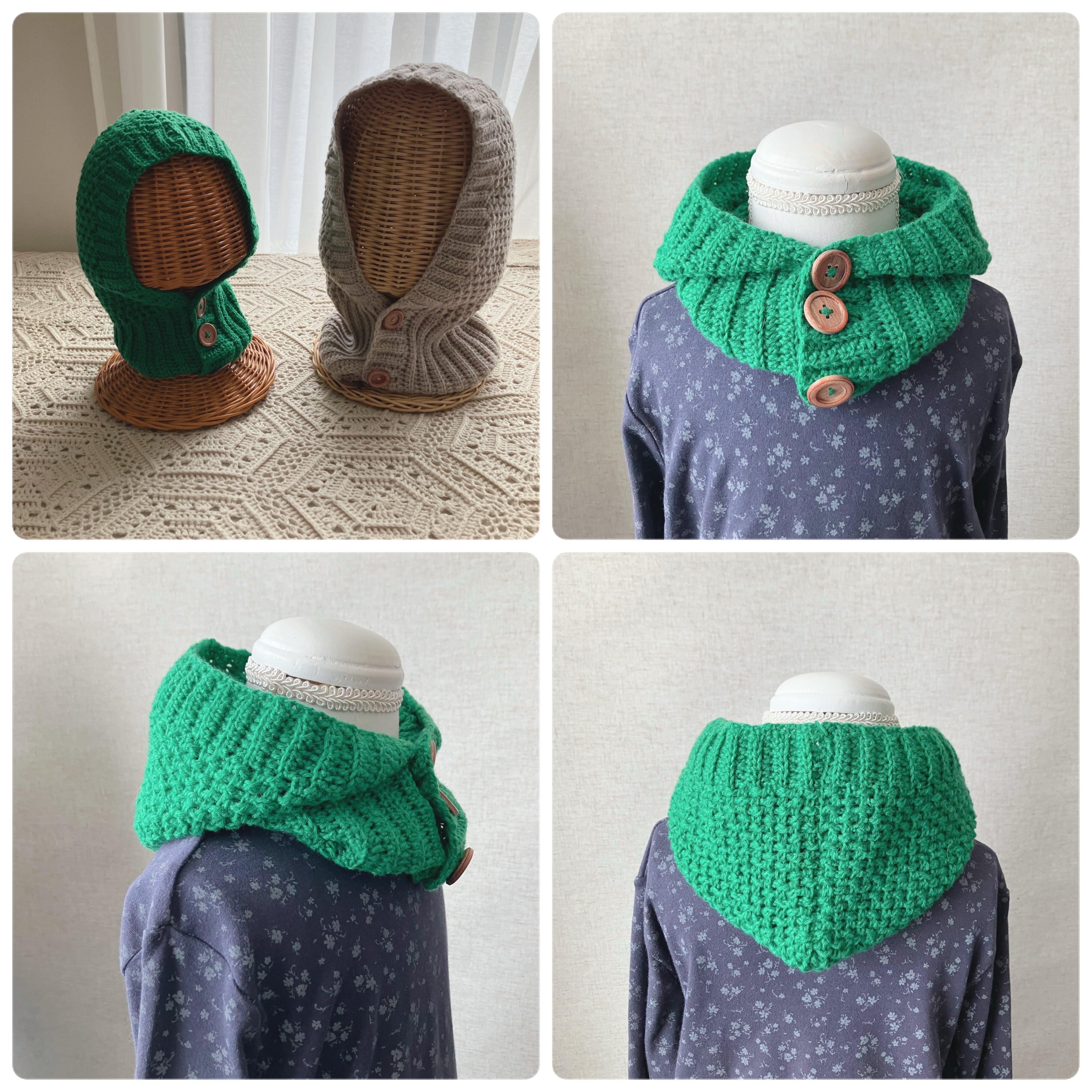 もちろん、フードは被らずネックウォーマーとして使っていただいても、とても可愛いと思います。