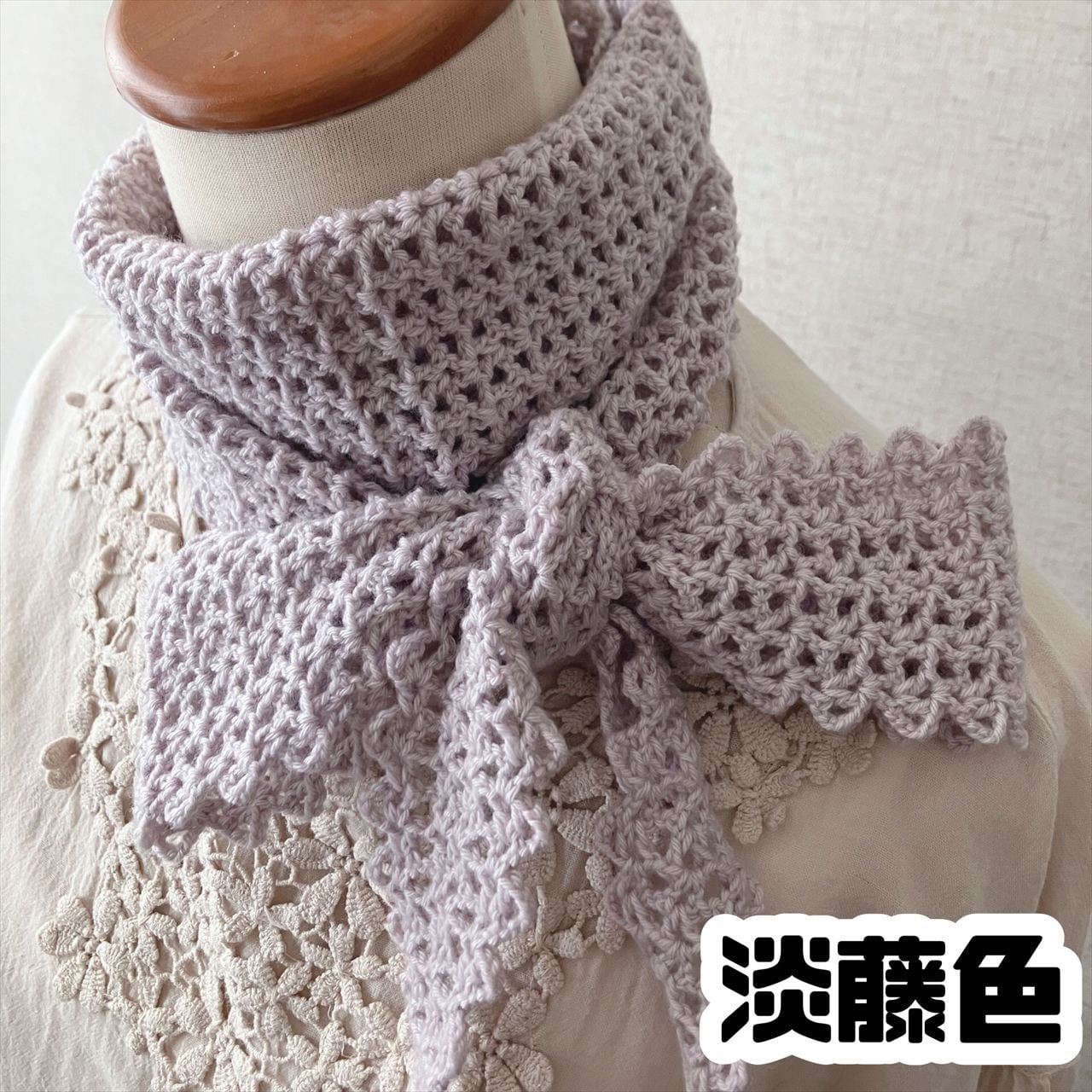 こちらのストールはかぎ針5号を使用しています。