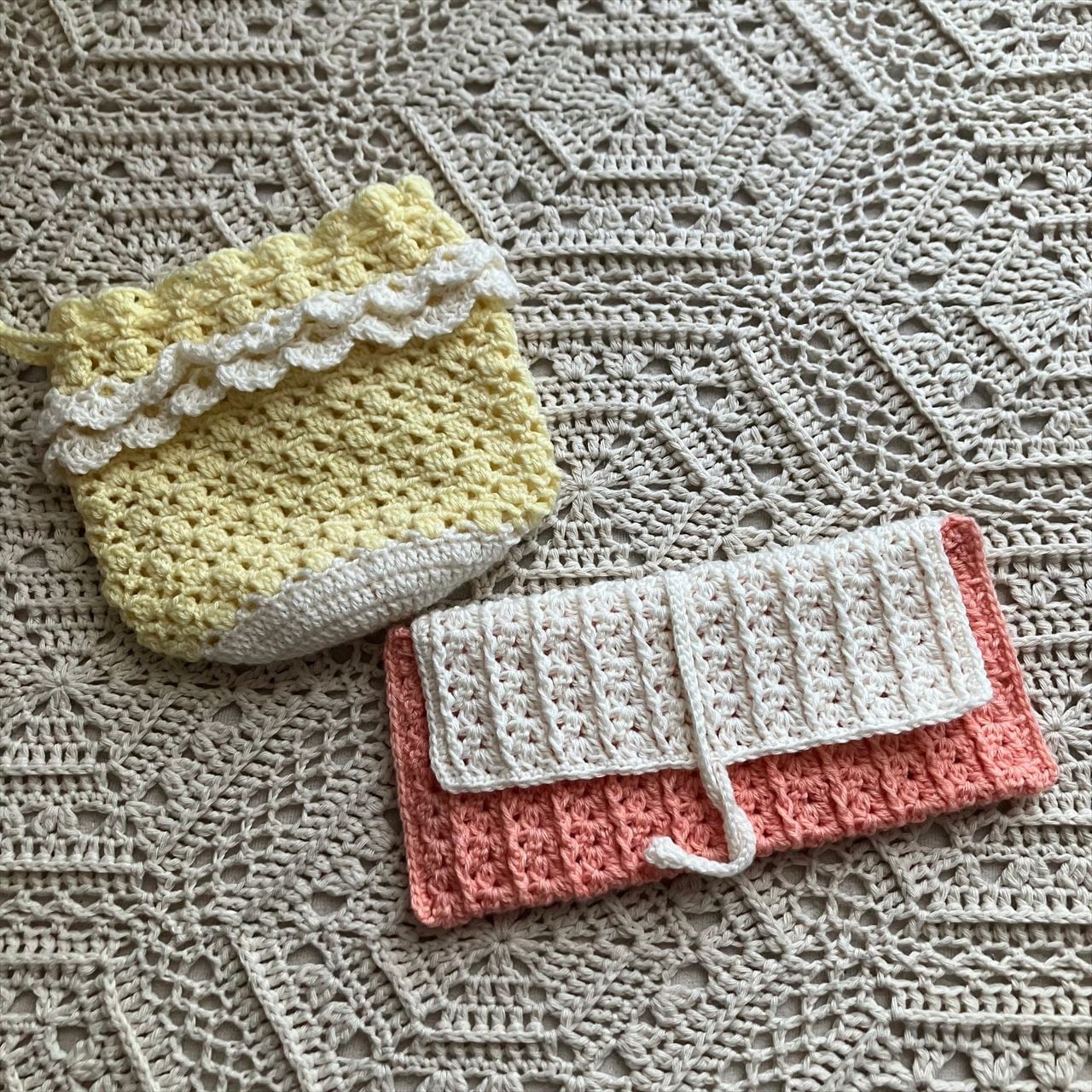 今回のセットには、3/8から開催予定の投票イベントでみなさんに投票していただく「巾着」と「ペンケース」両方の編み図(500円相当)をプレゼントいたします!