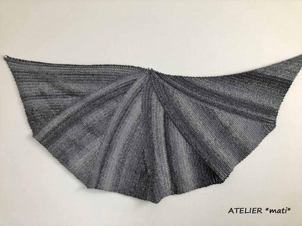 ロングピッチの段染めを活かし、放射状に色の移り変わりが広がるストールに仕上げました。