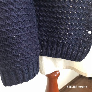 首元や前立て、袖口、裾にはゴム編み風の畝編みを入れているので、ボタンを外して着ていただいた時でも、裾の端がクルンとなってしまったりということがありません。