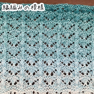 模様は、前半のダイヤ柄から後半の縁編みへと続きます。