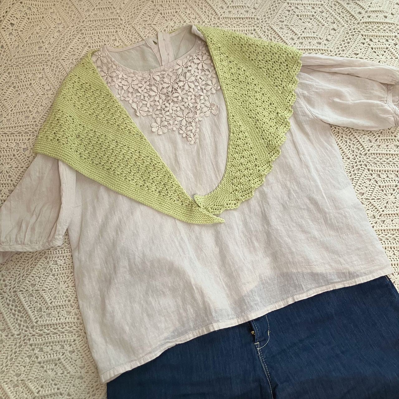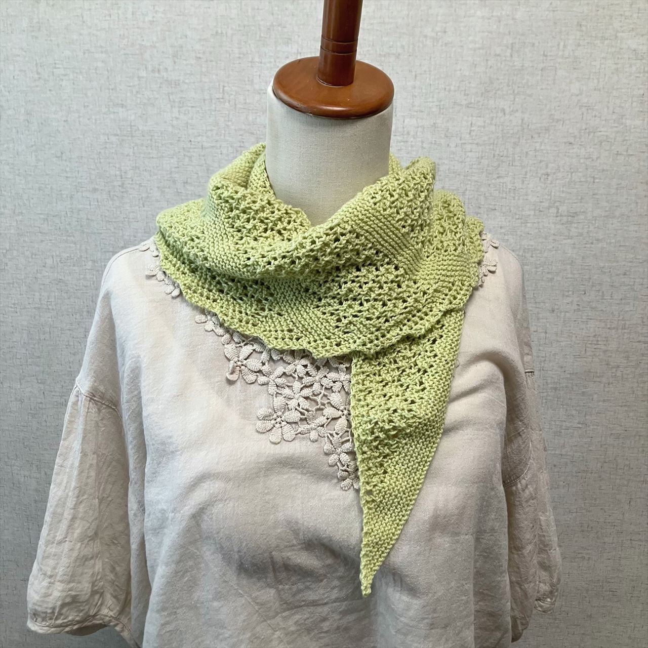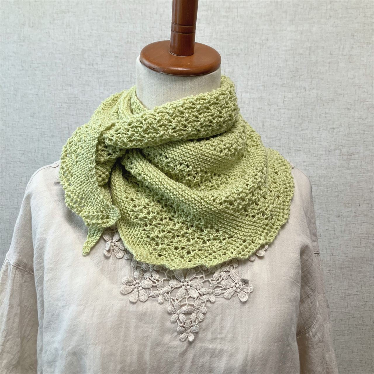 ショールは三角形になりますが、三角が深くないので、普通のマフラーのようにお使いいただけるのがポイント。